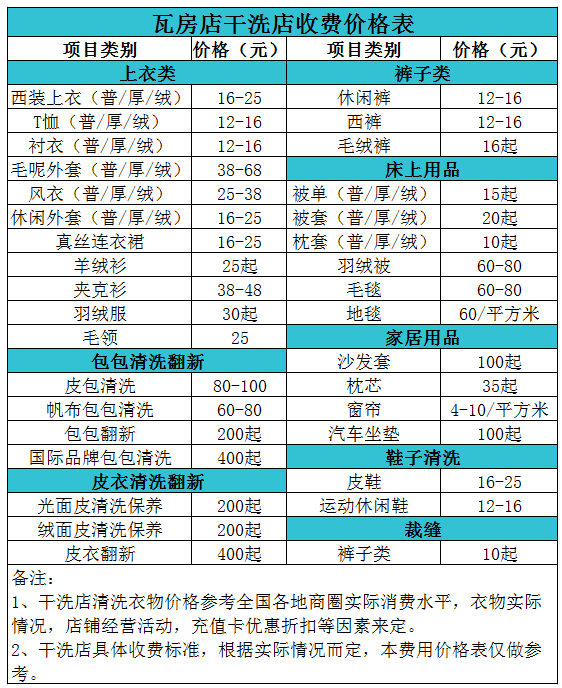 瓦房店干洗店收費價格表【詳細收費標(biāo)準(zhǔn)】怎么收費更賺錢