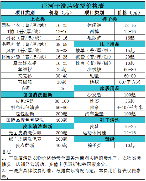 莊河干洗店收費價格表【詳細收費標(biāo)準(zhǔn)】怎么收費更賺錢
