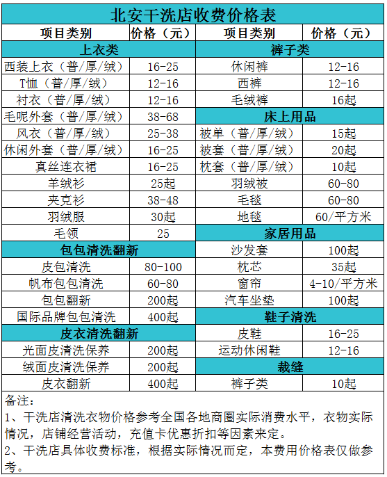 北安干洗店收費價格表【詳細收費標準】怎么收費更賺錢