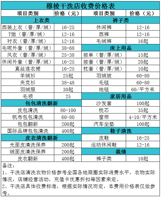 穆棱干洗店收費價格表【詳細收費標準】怎么收費更賺錢