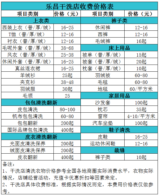 樂昌干洗店收費價格表【詳細收費標準】怎么收費更賺錢