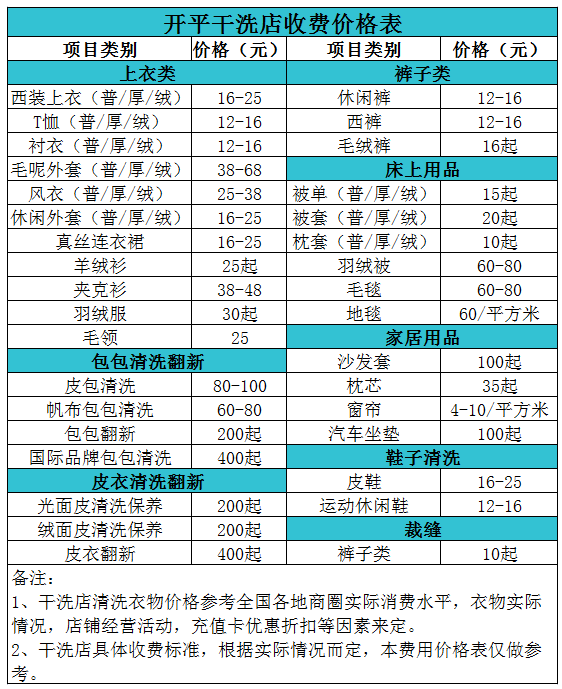 開平干洗店收費價格表【詳細收費標準】怎么收費更賺錢