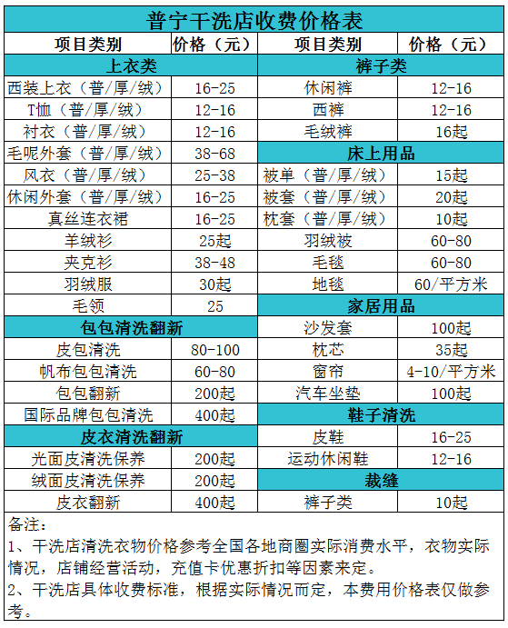 普寧干洗店收費價格表【詳細收費標準】怎么收費更賺錢