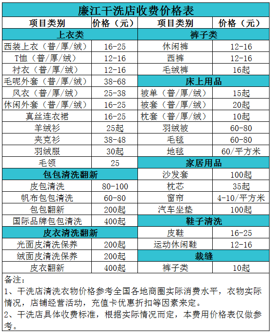 廉江干洗店收費價格表【詳細收費標準】怎么收費更賺錢