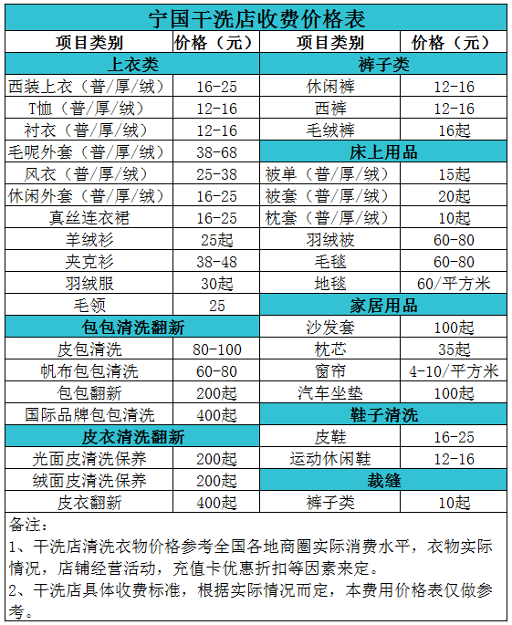 寧國干洗店收費價格表【詳細收費標準】怎么收費更賺錢