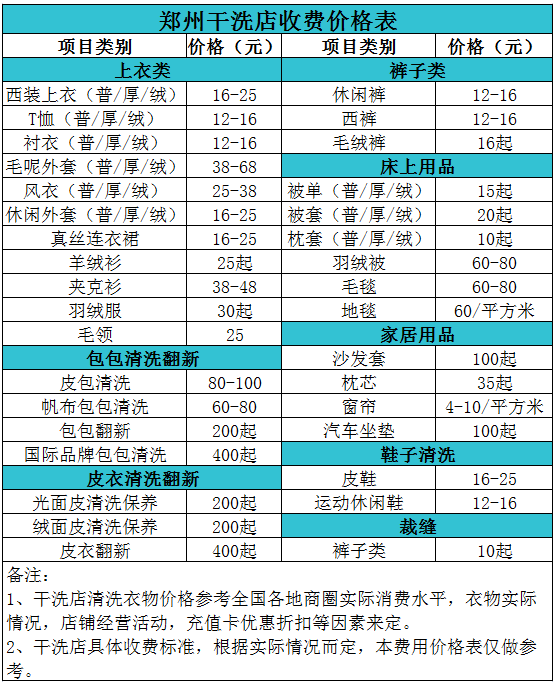 鄭州干洗店收費價格表【詳細收費標準】怎么收費更賺錢