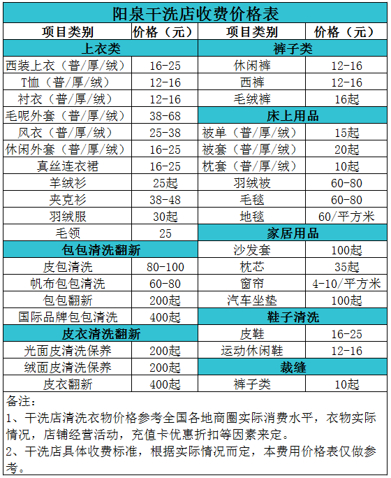 陽泉干洗店收費價格表【詳細收費標準】怎么收費更賺錢