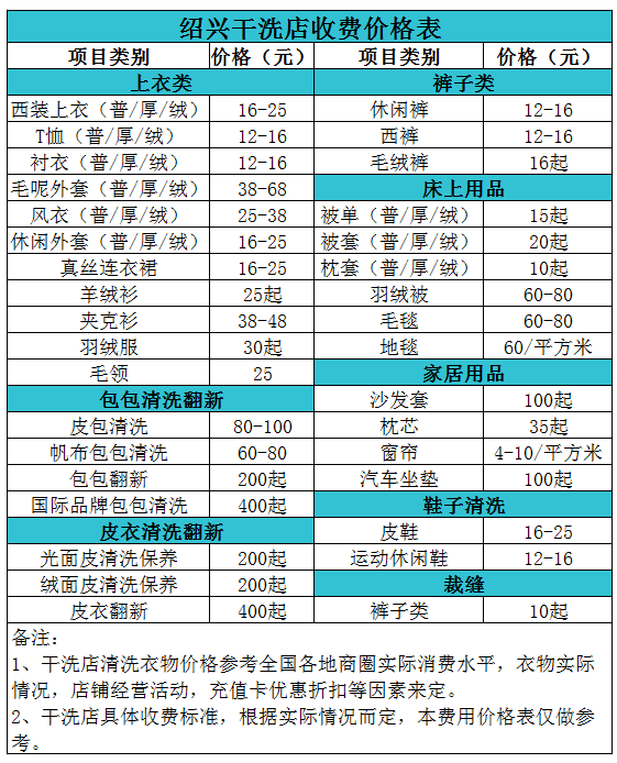 紹興干洗店收費(fèi)價(jià)格表【詳細(xì)收費(fèi)標(biāo)準(zhǔn)】怎么收費(fèi)更賺錢(qián)