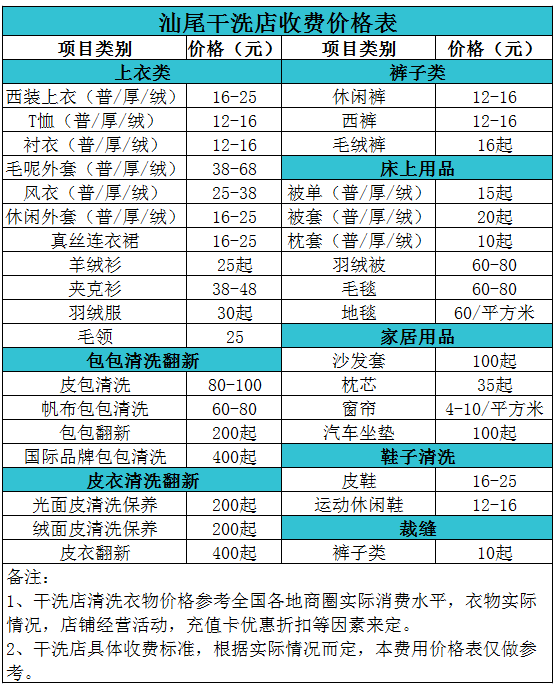 汕尾干洗店收費(fèi)價(jià)格表【詳細(xì)收費(fèi)標(biāo)準(zhǔn)】怎么收費(fèi)更賺錢(qián)
