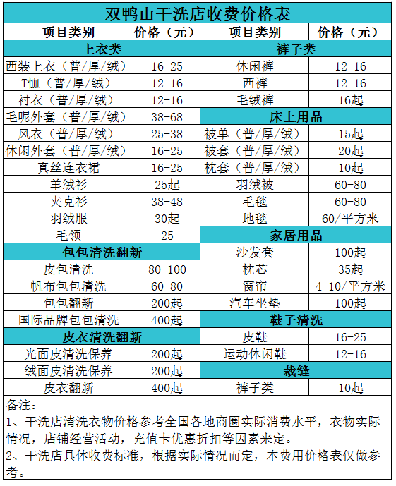 雙鴨山干洗店收費(fèi)價(jià)格表【詳細(xì)收費(fèi)標(biāo)準(zhǔn)】怎么收費(fèi)更賺錢(qián)