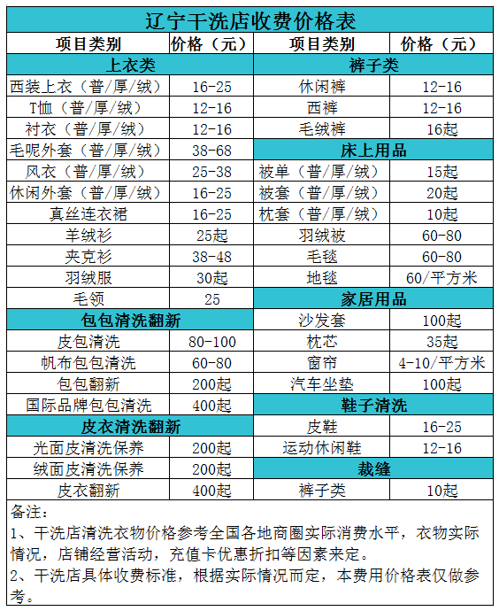 遼陽(yáng)干洗店收費(fèi)價(jià)格表【詳細(xì)收費(fèi)標(biāo)準(zhǔn)】怎么收費(fèi)更賺錢