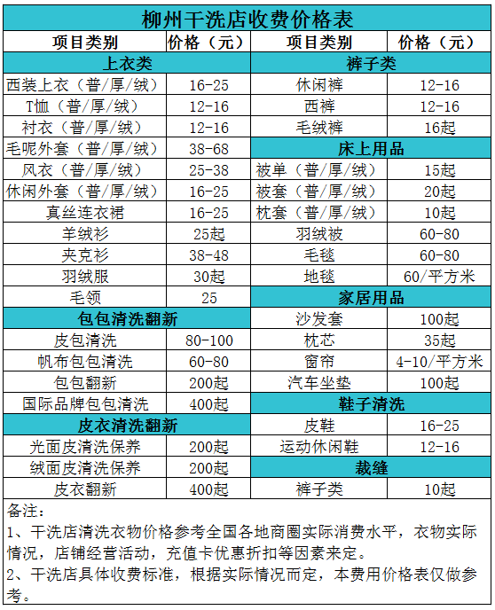 柳州干洗店收費(fèi)價(jià)格表【詳細(xì)收費(fèi)標(biāo)準(zhǔn)】怎么收費(fèi)更賺錢