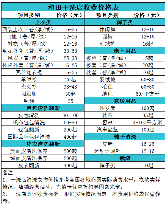 和田干洗店收費價格表【詳細收費標準】怎么收費更賺錢