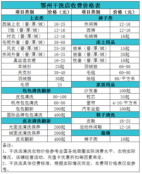 鄂州干洗店收費(fèi)價(jià)格表【詳細(xì)收費(fèi)標(biāo)準(zhǔn)】怎么收費(fèi)更賺錢