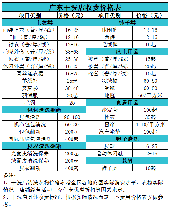 廣東干洗店收費(fèi)價(jià)格表【詳細(xì)收費(fèi)標(biāo)準(zhǔn)】怎么收費(fèi)更賺錢