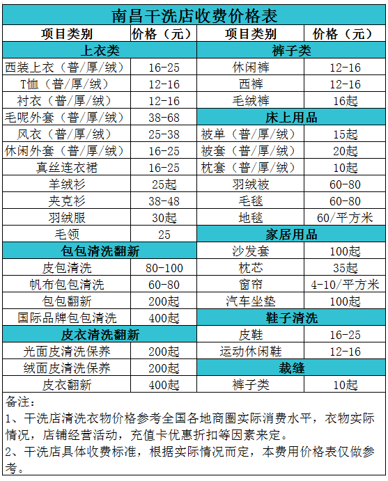 南昌干洗店收費價格表【詳細收費標準】怎么收費更賺錢