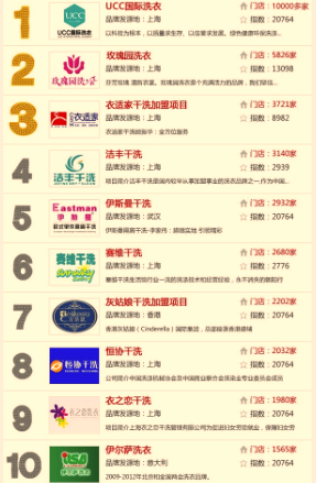 干洗店加盟排名?隨著干洗行業的興起,很多選擇自主創業的投資者都看到了干洗店加盟項目的優勢,紛紛想要開家品牌干洗連鎖加盟店,所以干洗店加盟品牌就成了選擇品牌的重要參考依據。下面就干洗店加盟排名方面共同了解下。